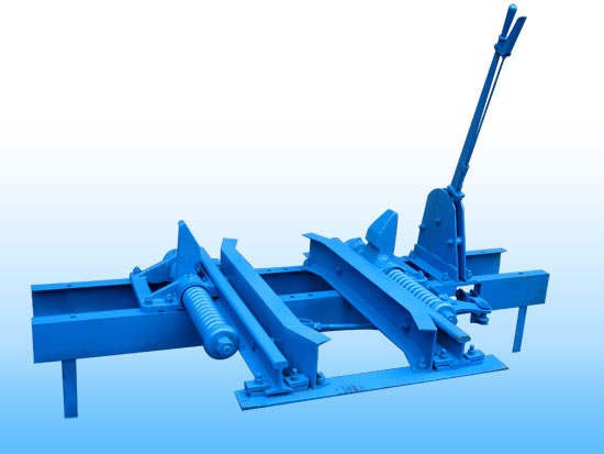 此阻車器為阻輪式阻車器,是礦井車場中將運行的礦車停止在某一個固定點的限位裝置,主要由一對阻爪和彈簧緩沖裝置等組成。阻爪打開時,礦車可自由通過;阻爪關閉時即阻擋住礦車車輪,使礦車停止前進。
